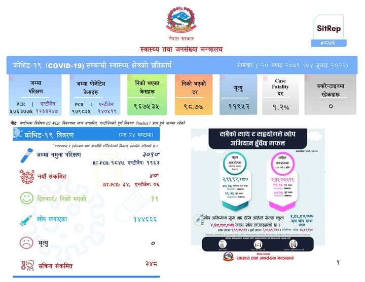 जम्मा तीन हजार दश नमुनामध्ये चालिस जनामा संक्रमण देखिएको हो l