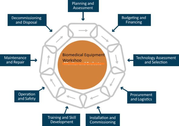 अर्को महत्वपुर्ण काम, उपकरण तथा मेशिनरी संचालन सम्बन्धी तालिम प्रदान गरि उपकरणको सामान्य समस्याको हल गर्न सक्ने दक्ष स्वास्थ्यकर्मीहरुको उत्पादन गर्ने लक्ष्य पनि रहेको छ । उपकरण मर्मत÷संभारको तालिम सञ्चालन गरी दक्ष प्राविधिक तयार पार्ने योजना पनि रहेको स्पष्ट छ, प्रयोग गर्न नसकिने वा पुर्ण रुपले बिग्रिएका औजार उपकरणहरुको उचित राष्ट्रिय तथा अन्तराष्ट्रिय मापदण्ड अनुसार ब्यवस्थापन पनि बायोमेडिकल कार्यशालाले गर्नेछ । कतिपय साना तथा ओसारपसार गर्न सकिने औजार उपकरणहरु कार्यशालामा ल्याई आवश्यकीय काम गर्दछ भने ठुला तथा आवश्यकताका आधारमा कार्यशालको प्राविधिक टोली सम्बन्धित क्षेत्रमा गई सेवा दिदै आईरहेको छ ।